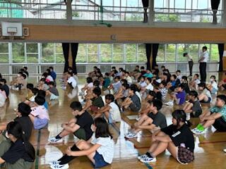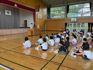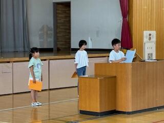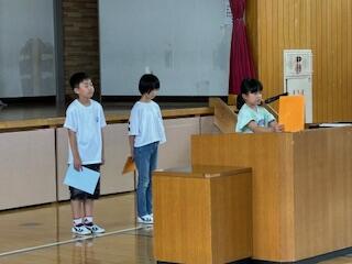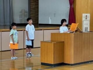 校長からの話の後、3名の代表児童が1学期の反省と夏休みの目標を堂々と発表しました。終業式後には、生徒指導担当から夏休みの過ごし方について大切な話をしました。