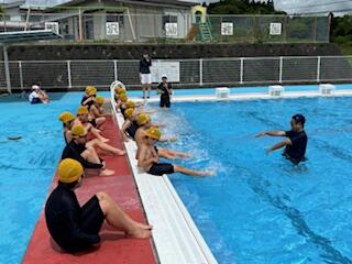 昨日までの雨が上がり、2校時に1・2年生、3校時に3・4年生が体育科の授業で、水遊び・水泳運動に取り組みました。