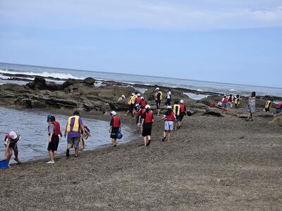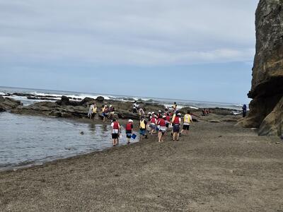昼食を終えて、舟戸海岸に移動し、磯遊びです。