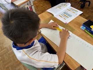 2年生の算数科の授業では、「100より大きい数をしらべよう」の学習です。「780を説明するには?」位で説明する、数の線を使うなどいろいろな考えが出されました。