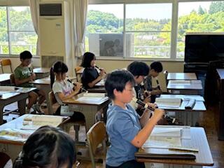 3年生の音楽科の授業では、「こんにちはリコーダー」の学習です。リコーダーの「ソ」「ラ」「シ」の指使いを1つずつ確認し、みんなできれいな音色で演奏します。