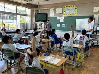 2024年6月20日 11時34分晴天に恵まれ、1・2年生が見学学習で石莚ふれあい牧場へ出かけました。
