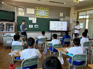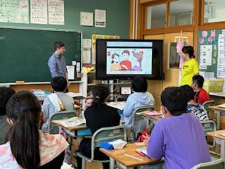 6年生の外国語科の授業では、マシュー先生と「My Weekend」の学習です。「How was your weekend?」英文を聞いて、週末をどのように過ごしたかを聞き取ります。