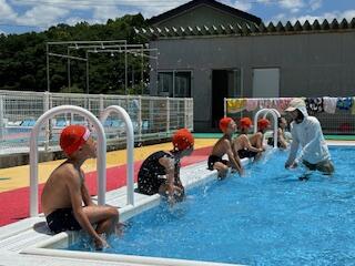 今日は、1年生が小学校のプールデビュー、2年生が大プールデビューです。怖がる様子もなく、笑顔いっぱいです。