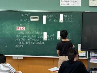4年生の算数科の授業では、「わり算のしかたを考えよう」の学習です。単元末の練習問題に挑戦します。得意な筆算だけでなく、文章題についてもじっくり考えます。