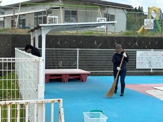 放課後には、ボランティアの保護者の皆さんでテントを設置したり、周辺の除草作業をしたり、きれいにしていただきました。