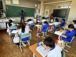 1・2年生の生活科の授業では、「ともだちとがっこうをたんけんしよう」の学習です。