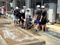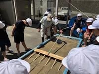 今日は、講師の遠藤様をお招きし、学校花壇で田植えです。