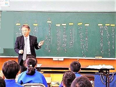 6年生は国語科で「敬語,謙譲語,丁寧語」を学んでいました。学習の時間に教室訪問をしましたところ,教科書の内容に「荷物を持っている場面」において,どのような丁寧語や敬語などを使用すればいいのか学んでいました。