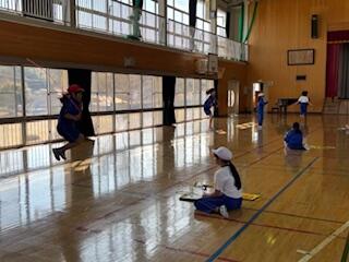 1年生の体育科の授業では、「体つくりの運動あそび」の学習です。持久跳びの合格者が増えてきました。後ろ跳びも数多く跳べるようになってきています。記録会に向けてがんばっています。