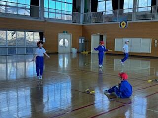 1年生の体育科の授業では、「体つくりの運動遊び(なわとび)」の学習です。2学期よりもなわとびが上手になってきた1年生。なわとび記録会に向けて、練習をがんばっています。