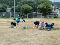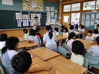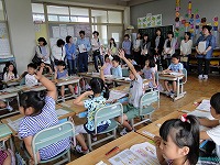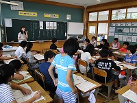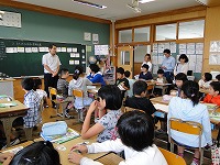 この日は、2校時目に1年生のマット運動。3校時目に2年生の跳び箱運動。4校時目に3年生の水泳。5校時目に5・6年生の水泳と、各学年のサポートをしていただき、子どもたちもとても喜んでいました。そして放課後は、体育用具室の整とん等を行ってもらいました。