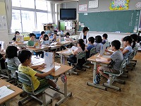 7月7日(水)の授業参観日に学校評議員会を開催し、今年度の学校経営方針や1学期の取組の様子を紹介しました。学校だより等を活用して、1学期の教育活動を紹介させていただきました。