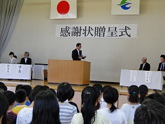 贈呈式は、主催者として本宮市副市長様、本宮市教育委員会委員長様が出席し、副市長様からお一人お一人に感謝状の贈呈が行われました。その後、副市長様よりごあいさつをいただきました。