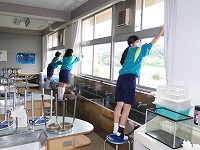 校庭や花壇の草取り、校舎内のガラス磨きなど、黙々と作業をする姿に感心させられました。1時間という短時間ではありましたが、なかなか手の行き届かないところをきれいにしてくれて、大変助かりました。