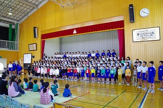 24日(土)に行われる学習発表会へ向けて、各学年準備を進めています。今日は、全校合唱の練習を行いました。全校生175名で3曲を歌います。歌だけでなく、入場・退場、そして6年生が担当するセリフと上手になってきました。この全校合唱の内容は、6年生が中心になって考えたものです。