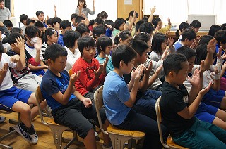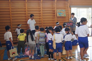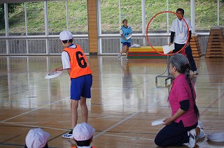 本日7日(水)、県フライングディスク協会の方々におこしいただき、4年生がユニバーサルスポーツの体験を行いました。これは、市社会福祉協議会のご協力をいただいて実施している福祉体験の一つで、総合的な学習の時間に4年生が取り組んでいる「福祉」をテーマとした学習です。