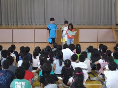 児童代表3名が一学期にがんばったことを堂々と発表しました。