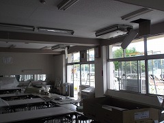 ランチルームに設置作業中のエアコン