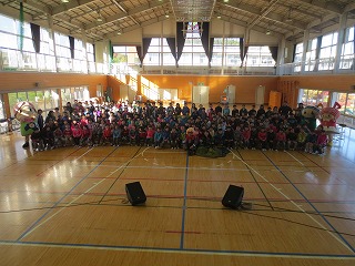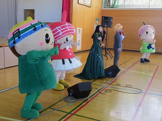 6名の講師の皆さんによる「春の海」「赤鼻のトナカイ」「きよしこの夜」の演奏を鑑賞し、その後児童が琴で「さくらさくら」を1フレーズずつ体験しました。