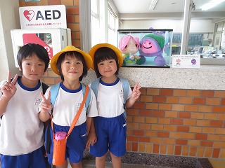 子どもたちは、さっそく玄関前に仲良くならんでいた「アッピーくん」と「まゆみちゃん」を見つけ、「アッピーくんもまゆみちゃんも知ってる!!」と、すでに人気者でした。