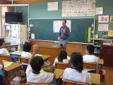 新任英語指導助手のジェフリー先生(白沢中学校)が、子どもたちの英語指導のために2度目の糠沢小学校訪問をしました。