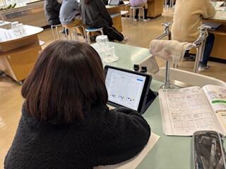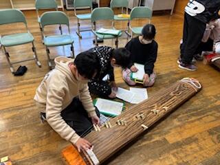 初めての楽器に戸惑いも見られましたが、グループで教え合いながら楽しく演奏し、校舎には「箏」の素敵な音色が響きました。