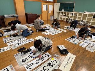 6年生の国語科(書写)の授業では、「書きぞめ」の学習です。