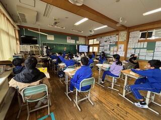 4年生の総合的な学習の時間の授業では、「伝統を引き継ごう」の学習です。6年生が作成してくれた鼓笛の動画を見ながら練習し、その後、4年生だけで「ドラムマーチ」「校歌」を演奏します。