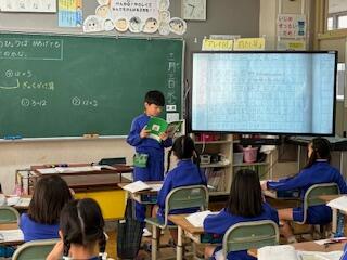 3年生の算数科の授業では、「小数」の学習です。「小数のしくみはどうなっているのかな?」これまでに学習していた「一の位」などの他に、新しく「小数点」「小数第一位」が登場します。