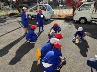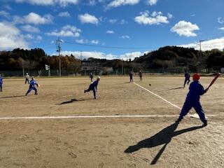 4年生の体育科の授業では、「ベースボール型 三角ベースボール」の学習です。守備では大谷選手からいただいたグローブを使い、攻撃ではバットかテニスラケットを使い、紅白試合に挑戦します。