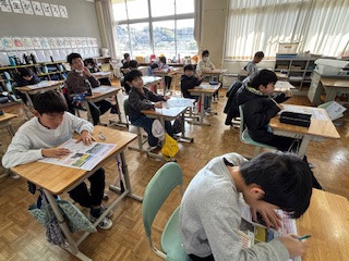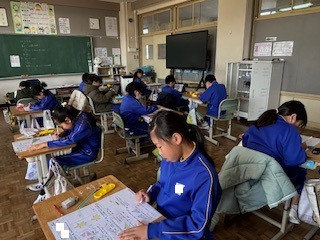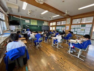 6年生は社会科で江戸時代の様子について学習しています。教科書や資料集を活用して当時のキリスト教禁止の政策について背景を調べたり、自分の考えをまとめたりしていました。