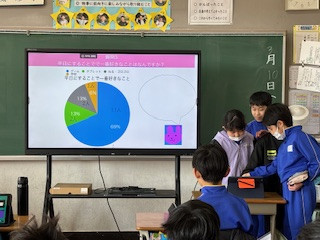 5年生が学級活動で、お楽しみ会の計画を立てています。学級のみんなが楽しめるよう、それぞれの考えの相違はありますが、司会を中心に話し合いを行っていました。