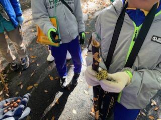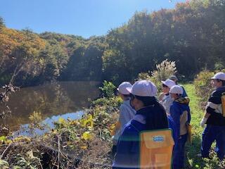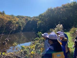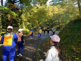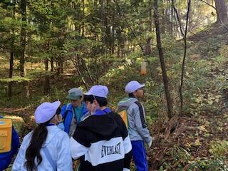 3・4年生は総合的な学習の時間で、本宮運動公園で森林学習を行いました。