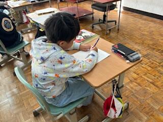 1年生の国語科の授業では、漢字の学習です。「じどう車くらべ」「じどう車ずかんをつくろう」に出てくる新しい漢字の書き順や画数を確認しながら、丁寧に漢字を書きます。