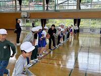 1年生・2年生の体育科の授業では、合同で「体つくりの運動遊び」の学習です。校内持久走記録会に向けて、実際のコースを走ります。みんな最後まで一生懸命がんばって走ります。