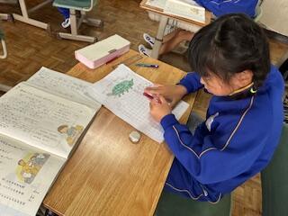 1年生の国語科の授業では、「しらせたいな、見せたいな」の学習です。「見つけたことを文章に書こう」自分で選んだ生き物や動物について、友だちに知らせる文章を書きます。