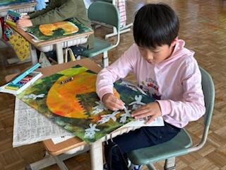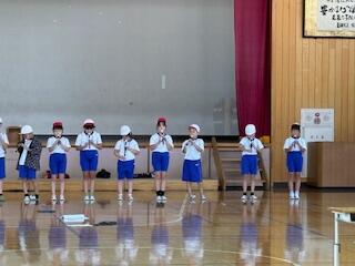 毎年、年長さんを招待し、1年生や2年生の発表を見ていただいています。