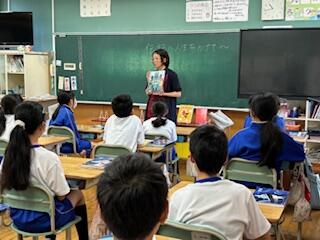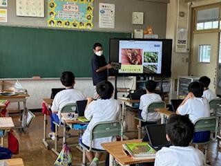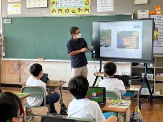 4年生の理科の授業では、「すずしくなると」の学習です。前時に校庭で撮影した生き物や植物の写真を発表します。「葉っぱについている卵は何の卵かな?」不思議な発見です。