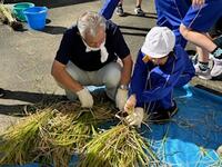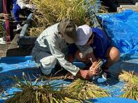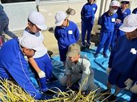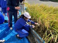 田植えのときからご指導いただいている遠藤さんに、道具の使い方やコツを教えていただきながら、一人一人稲を刈ることができました。