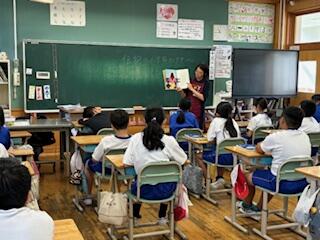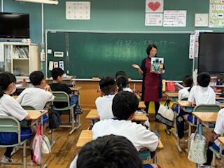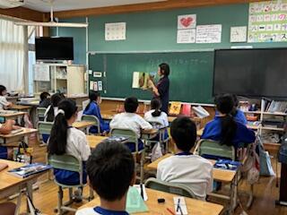 5年の国語科の授業では、学校司書による「ブックトーク」です。