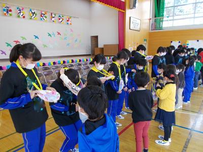2019年3月5日 16時00分3月5日(火),児童会活動で,5年生が中心となり「6年生を送る会」が開催されました。「6年生との思い出作り」では,6年生と下級生とが一緒になって,「じゃんけん列車」や「大根抜きゲーム」,「玉入れ」などの活動を行いました。活動の中で,随所に見られた,6年生の優しさや思いやりの行動は,本校の教育目標である「優しい子」そのものです。また,下級生からの「6年生を送る言葉」や「プレゼント贈呈」も,大変心のこもったものであり,見ている私たちの心も温かくするものでした。きっと,6年生に感謝の気持ちが伝わったことと思います。6年生の皆さん,卒業式まであとわずかです。「やっぱり!糠沢小学校でよかった!」と言って卒業できるように,1日,1日を大切に過ごしていきましょう。応援しています。