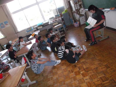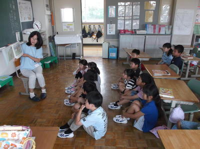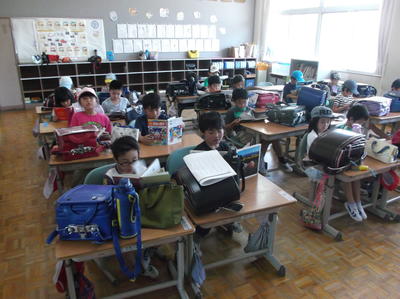 2年生は帰りの用意を済ませてから読書、1年生は担任の先生に読み聞かせをしてもらっていました。