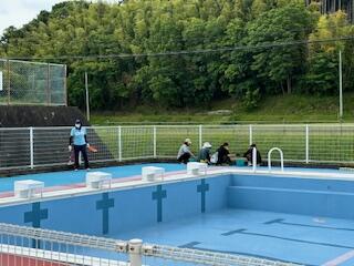 水泳の授業に向けて、5・6年生でプール清掃を行いました。