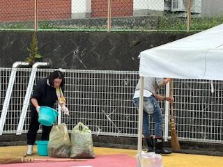 放課後には、ボランティアの保護者の皆さんでテントを設置したり、周辺の除草作業をしたり、きれいにしていただきました。
