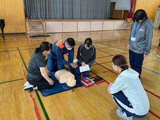 本日の放課後、安達広域行政組合南消防署から3名の方を講師に迎え、教職員を対象に「心配蘇生法講習会」を行いました。