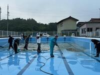 6月7日(金)のプール清掃に向け、1日(土)6時から地域の方々・PTA本部役員の方々・教職員による事前のプール清掃を実施しました。