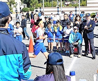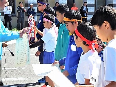 さらに,糠沢小Aチームで第7区を走りました選手が「区間新記録賞」を頂きました。素晴らしい子どもたちです。保護者の皆様方,ご家族の皆様方,地域の皆様方,そして糠沢っ子の応援によりまして,素晴らしい駅伝となりました。ここで,改めて糠沢小学校の先生方のご協力とご支援により,糠沢っ子は素晴らしい駅伝大会とすることができました。心より感謝申し上げます。