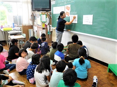 糠沢小学校では,各教科にて「ジャンプ問題」を位置づけ,学びを活用する場と機会を設けています。今回も,まとめの後に,「ジャンプ問題」を提示し,学んだことを生かしながら解いていました。