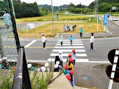 このように,交通量が多い中,子どもたちが「安全」を確認しながら登校をしています。班長さんや副班長さんなど,信号で横断を待っていてくれた自動車の運転手さんへ,「御礼の会釈」をしています。子どもたちの通学に対する運転手さんの「思いやりと安全確保」に改めて感謝申し上げます。これからも,子どもたちの「命」を守るために,学校・PTA・行政・警察の関係・連携を強化していきたいと思います。